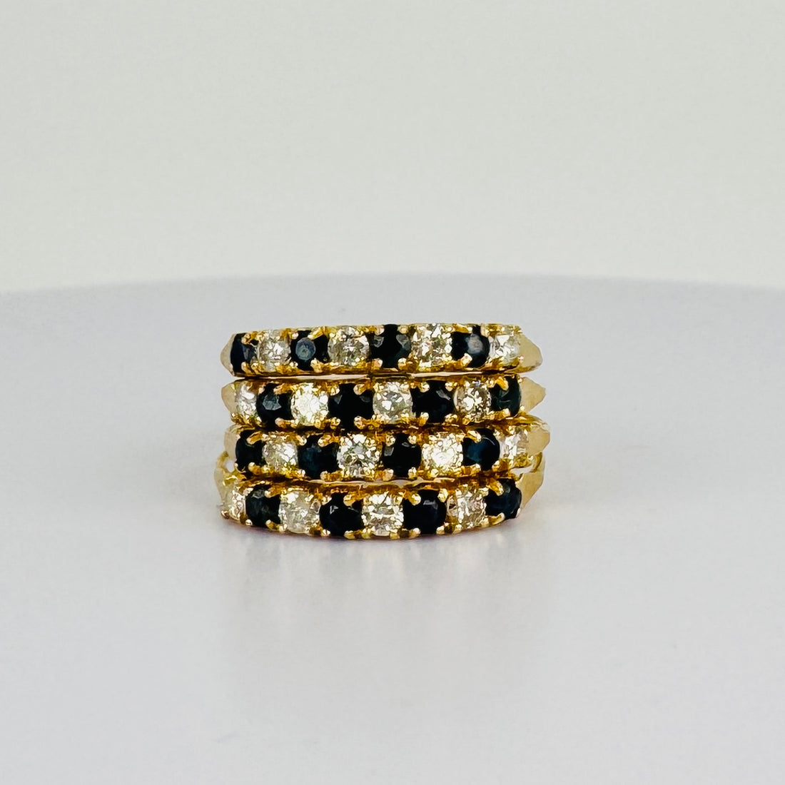 Vintage Stack Rings met Diamanten & Blauwe Saffieren