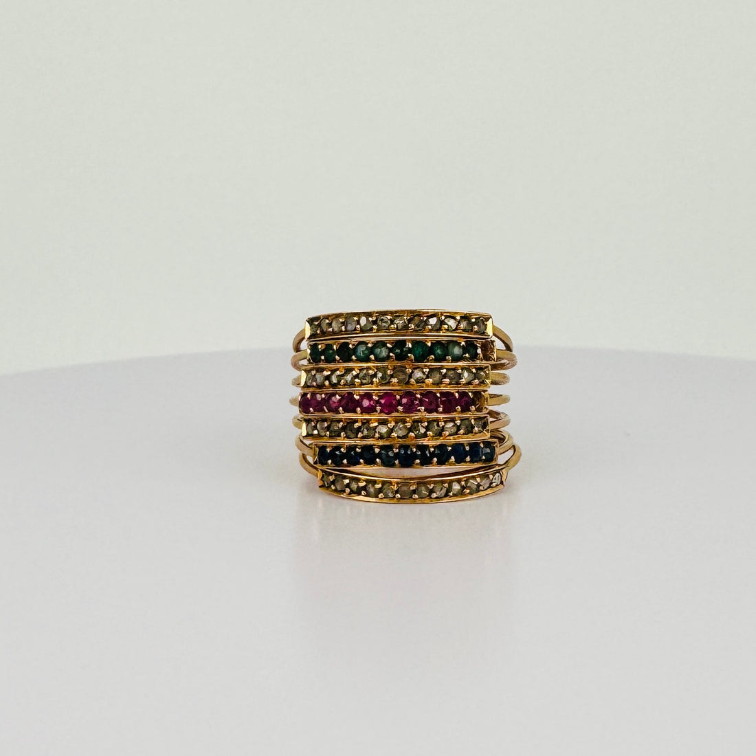Vintage Ring with Diamonds, Ruby, Emerald & Sapphire