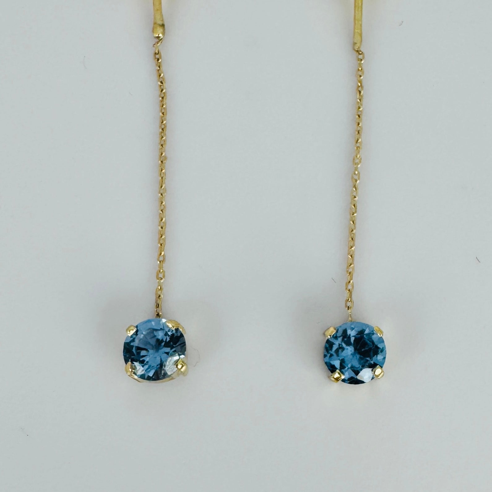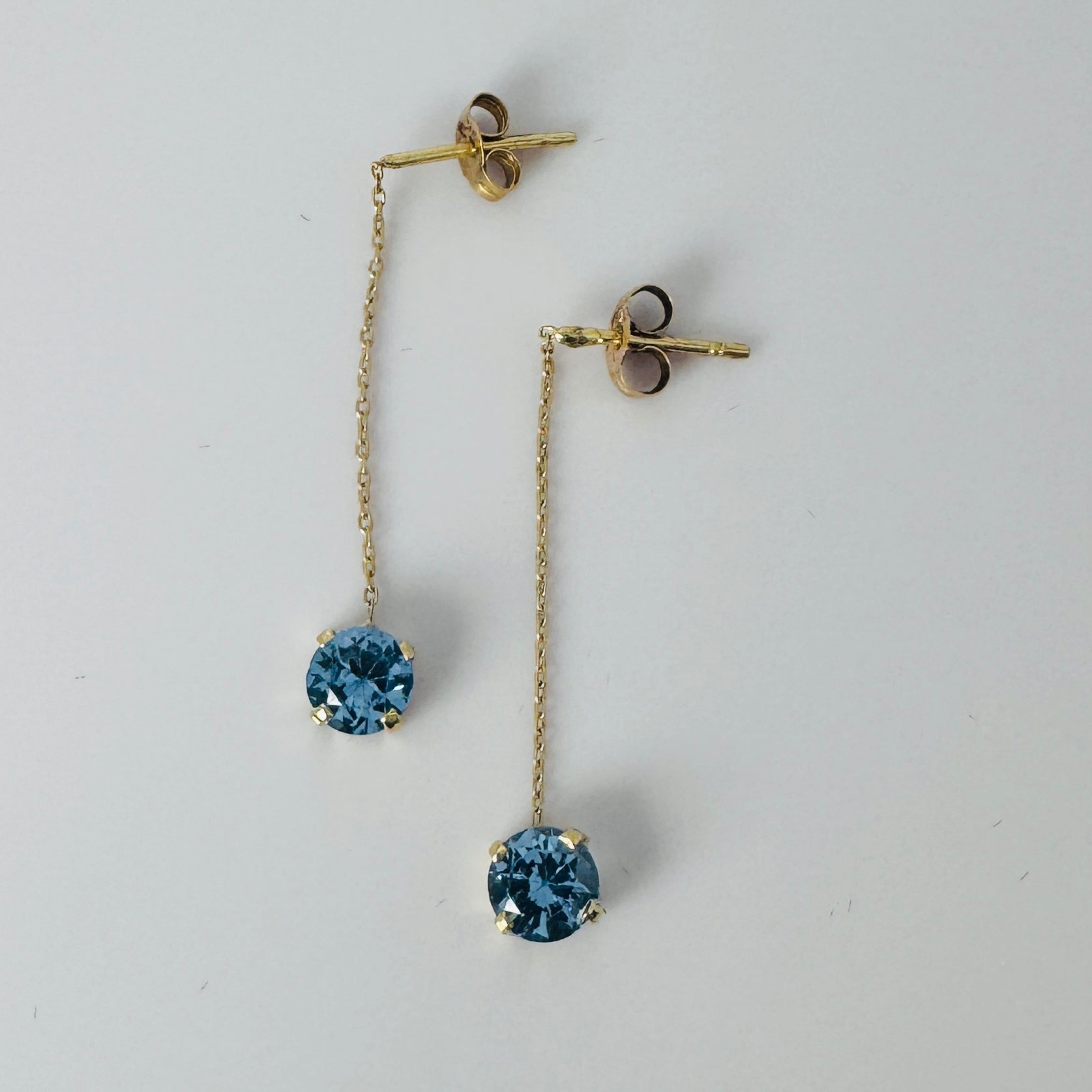 Beautiful vintage earrings crafted in solid 18k gold and set with soft, light-blue aquamarine gemstones. The delicate chain design adds subtle movement and elegance, making these earrings perfect to elevate your everyday look or to wear as a refined statement on special occasions. A timeless pair in excellent condition, ready to be treasured.