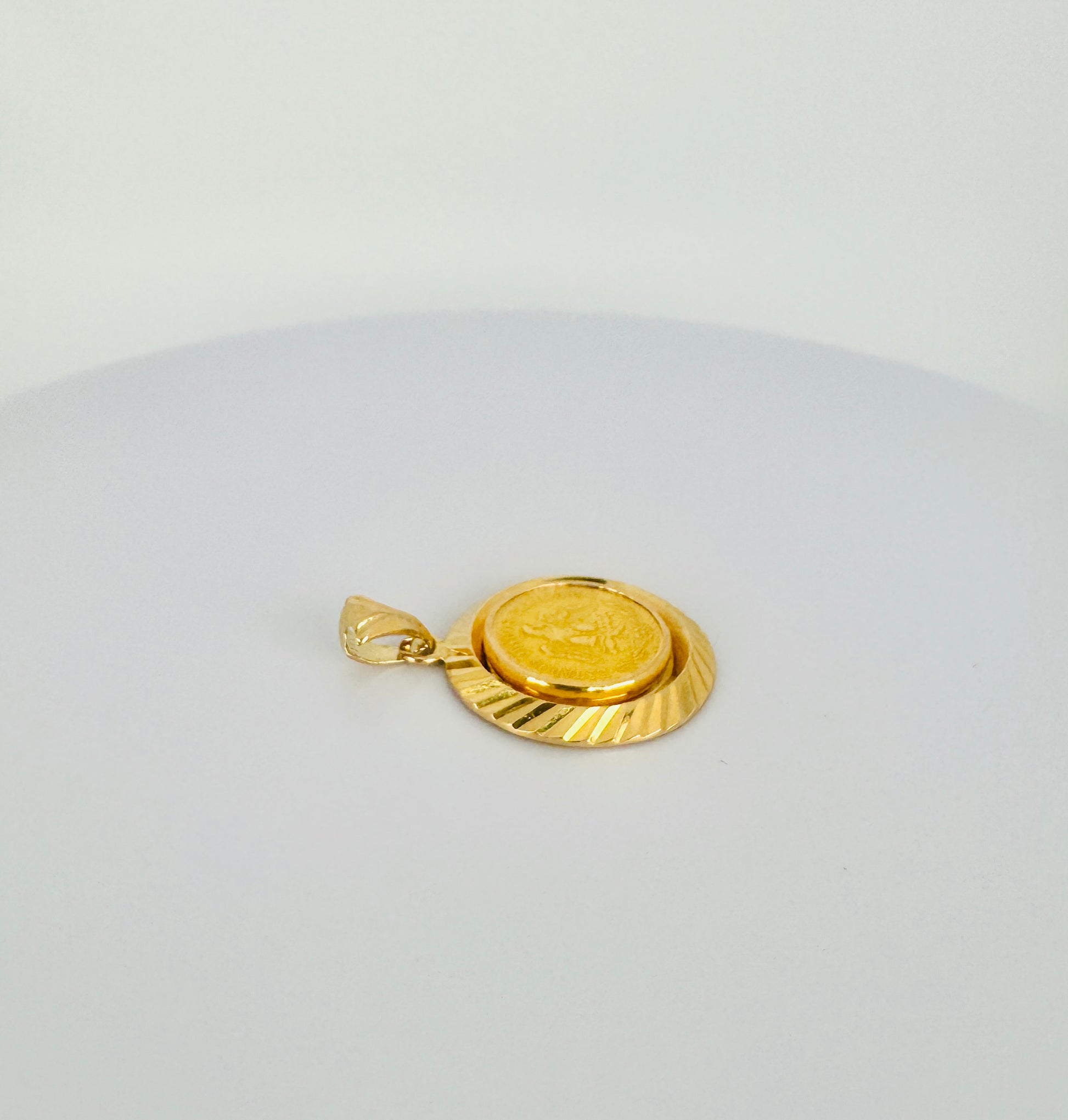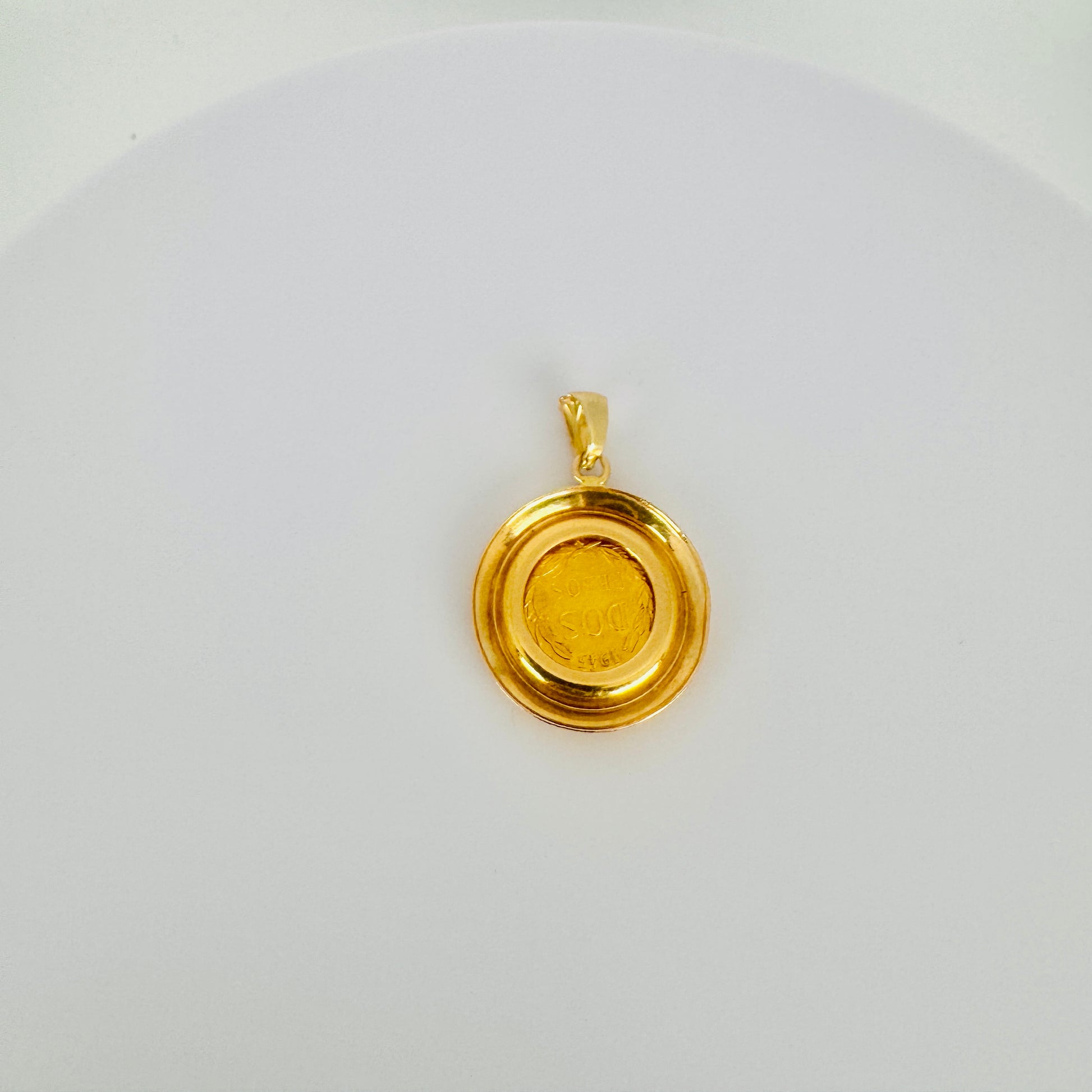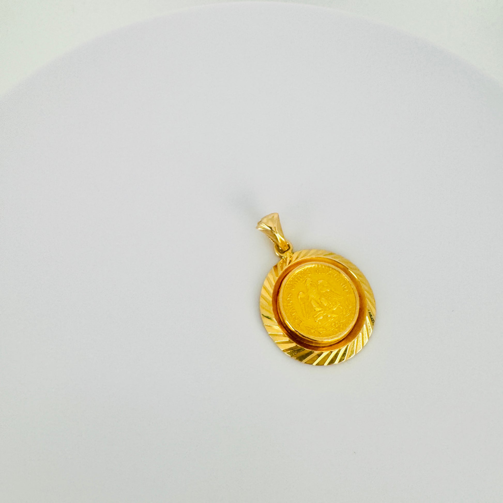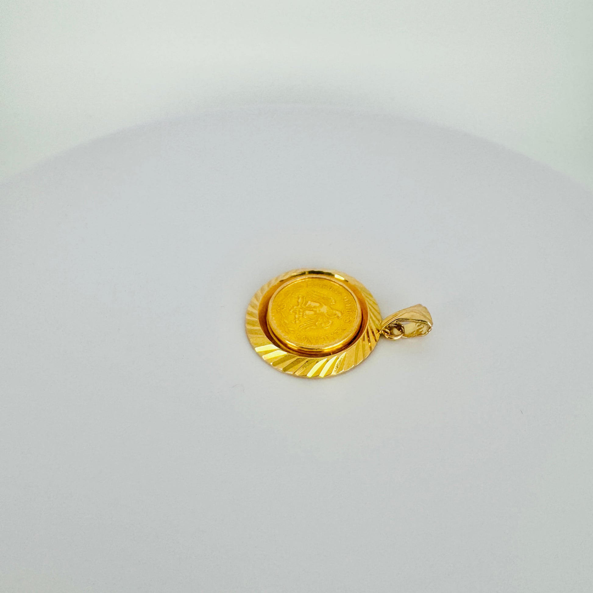 Beautiful vintage pendant "dos pesos". This preloved jewel is made of 18k solid yellow gold.