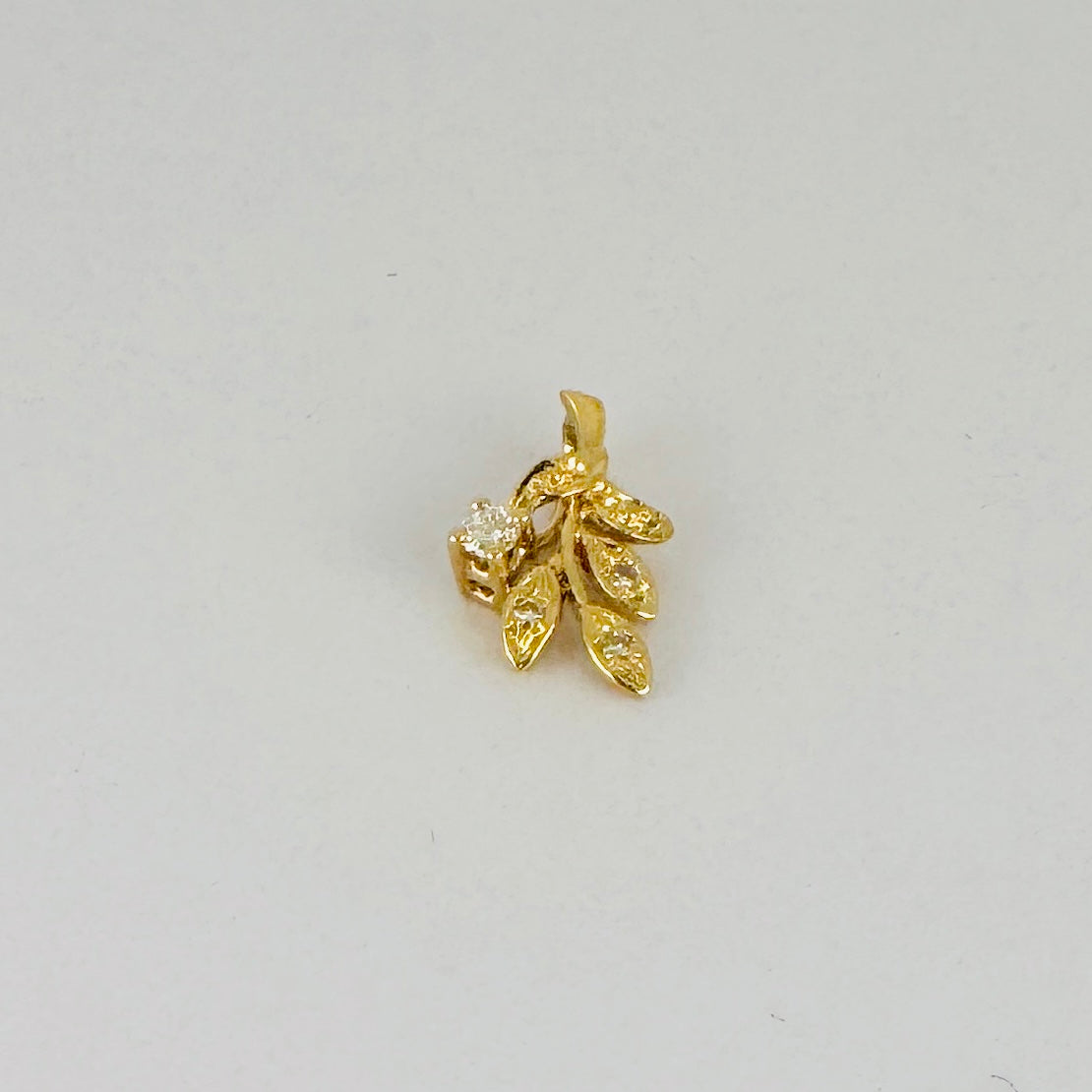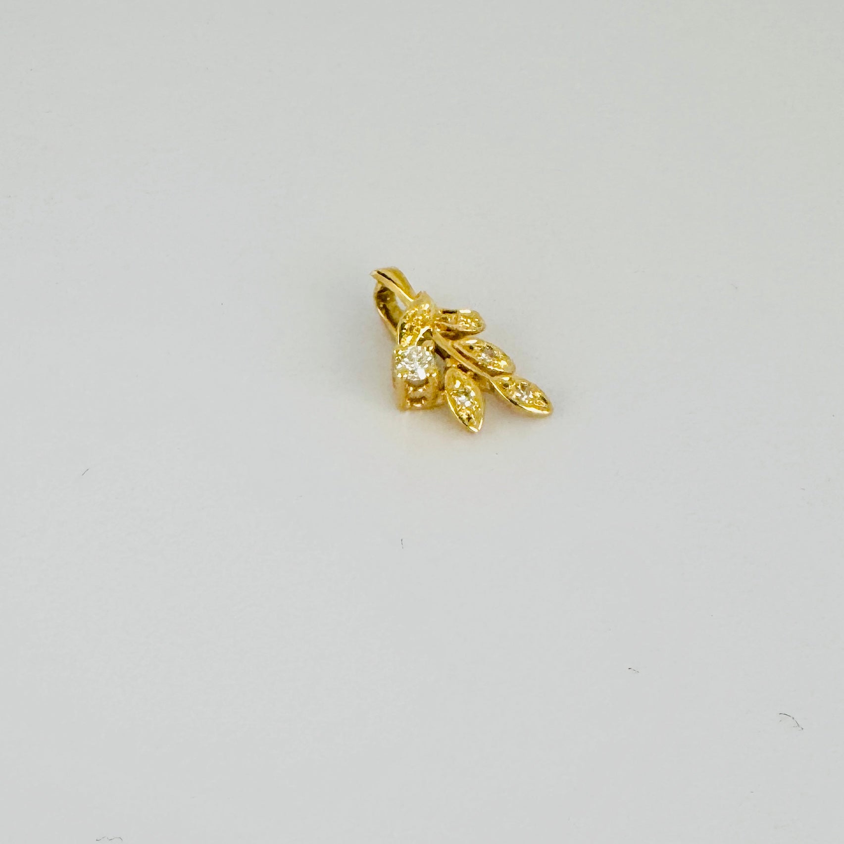 Discover this refined vintage pendant, crafted from 18 carat yellow gold. Featuring gold leaves with a stunning diamond. This pre-loved jewelt adds a touch of sophistication and subtle beauty to any jewelry collection.