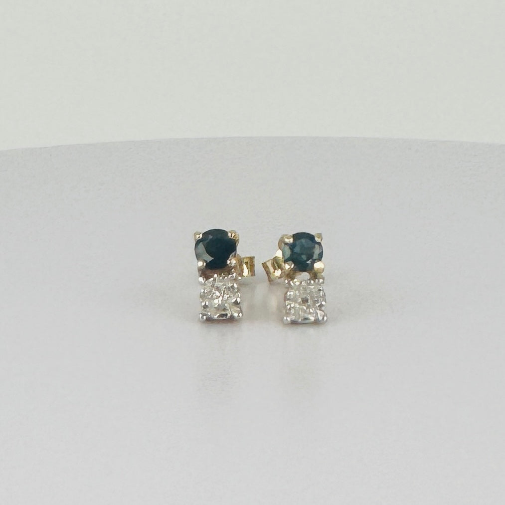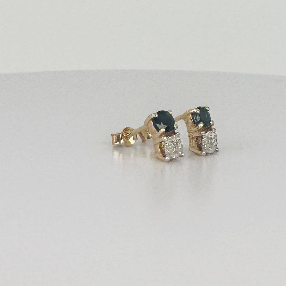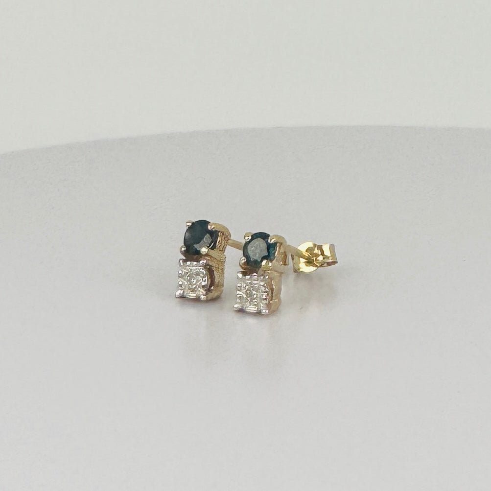 Vintage Oorbellen met Blauwe Saffier & Diamant
