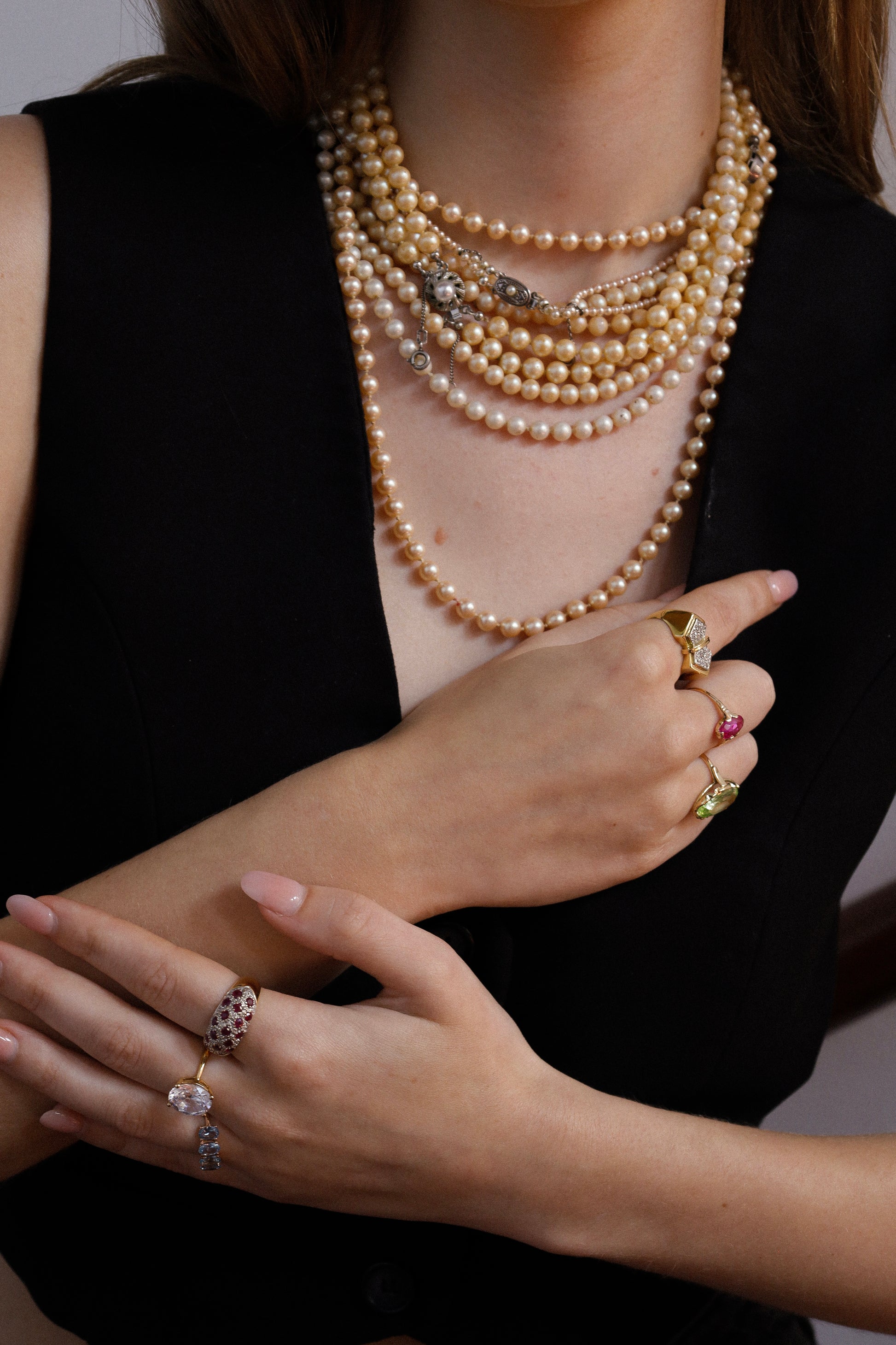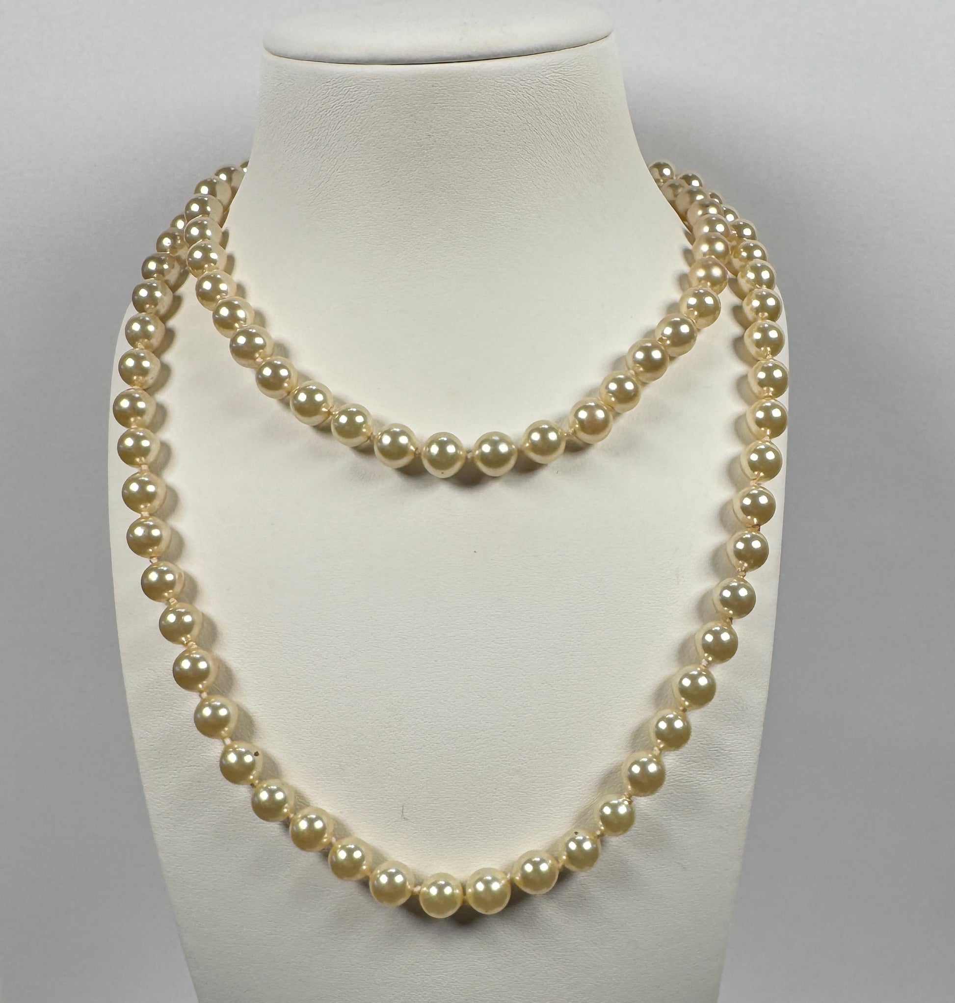Geef je look een boost met de verfijnde glans van glanzende imitatieparels uit de jaren 60. Deze ketting biedt de perfecte balans tussen klassiek en eigentijds en zorgt voor een moeiteloze elegantie zonder ooit overdreven te zijn. Draag hem lang voor een slank, langgerekt silhouet, of dubbel voor een chique gelaagd effect. Hoe je hem ook draagt, deze veelzijdige parelketting maakt je look helemaal af.