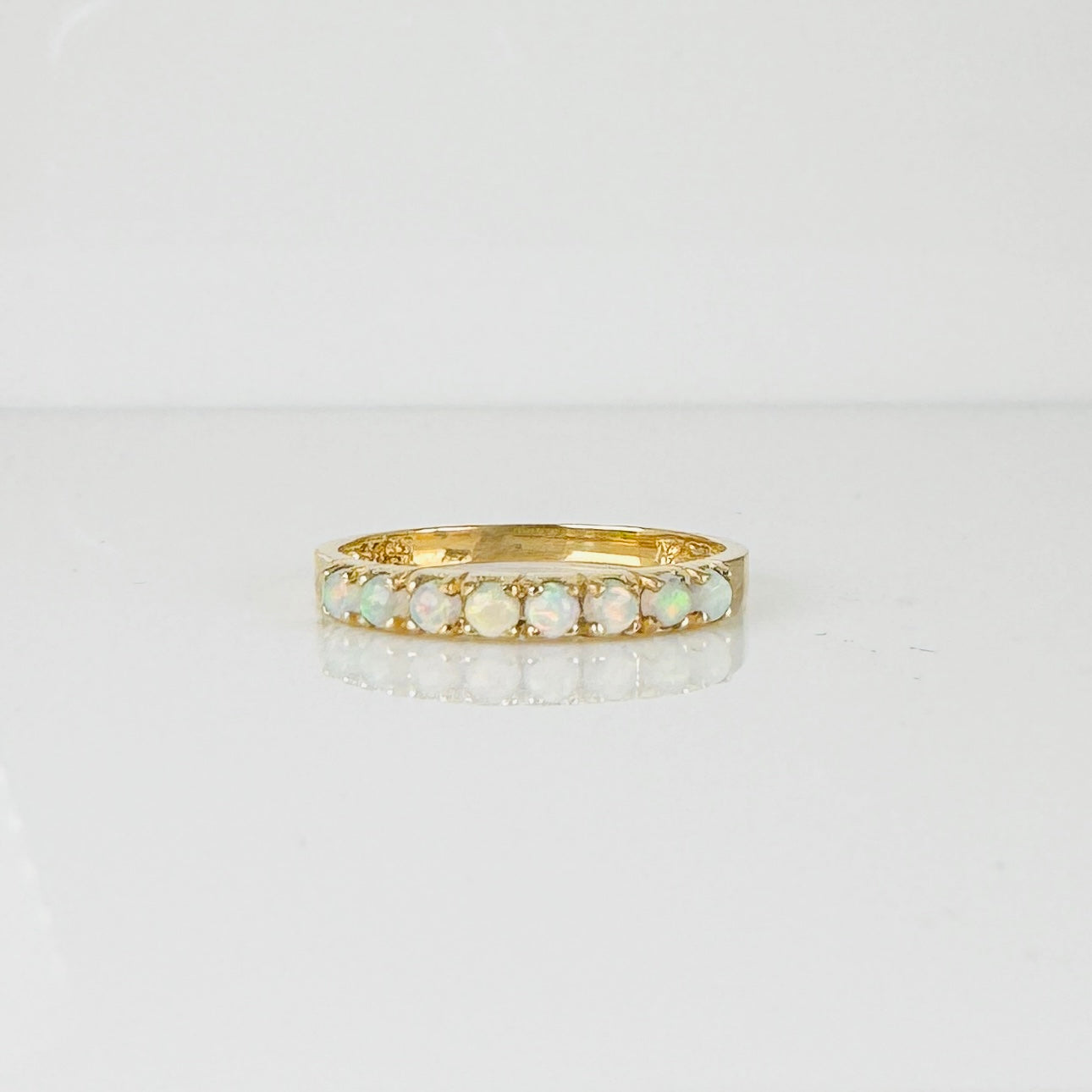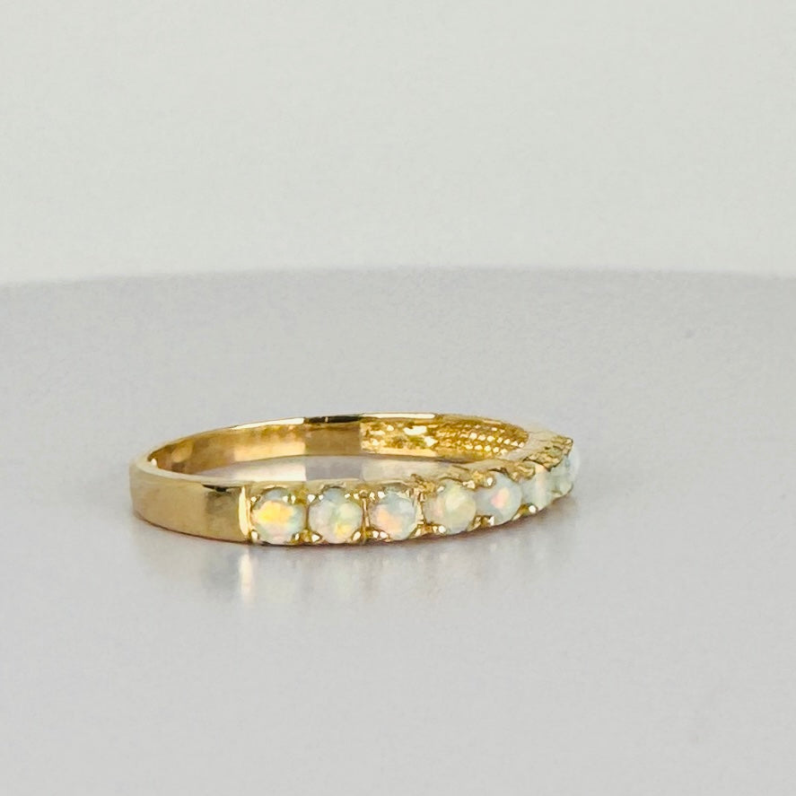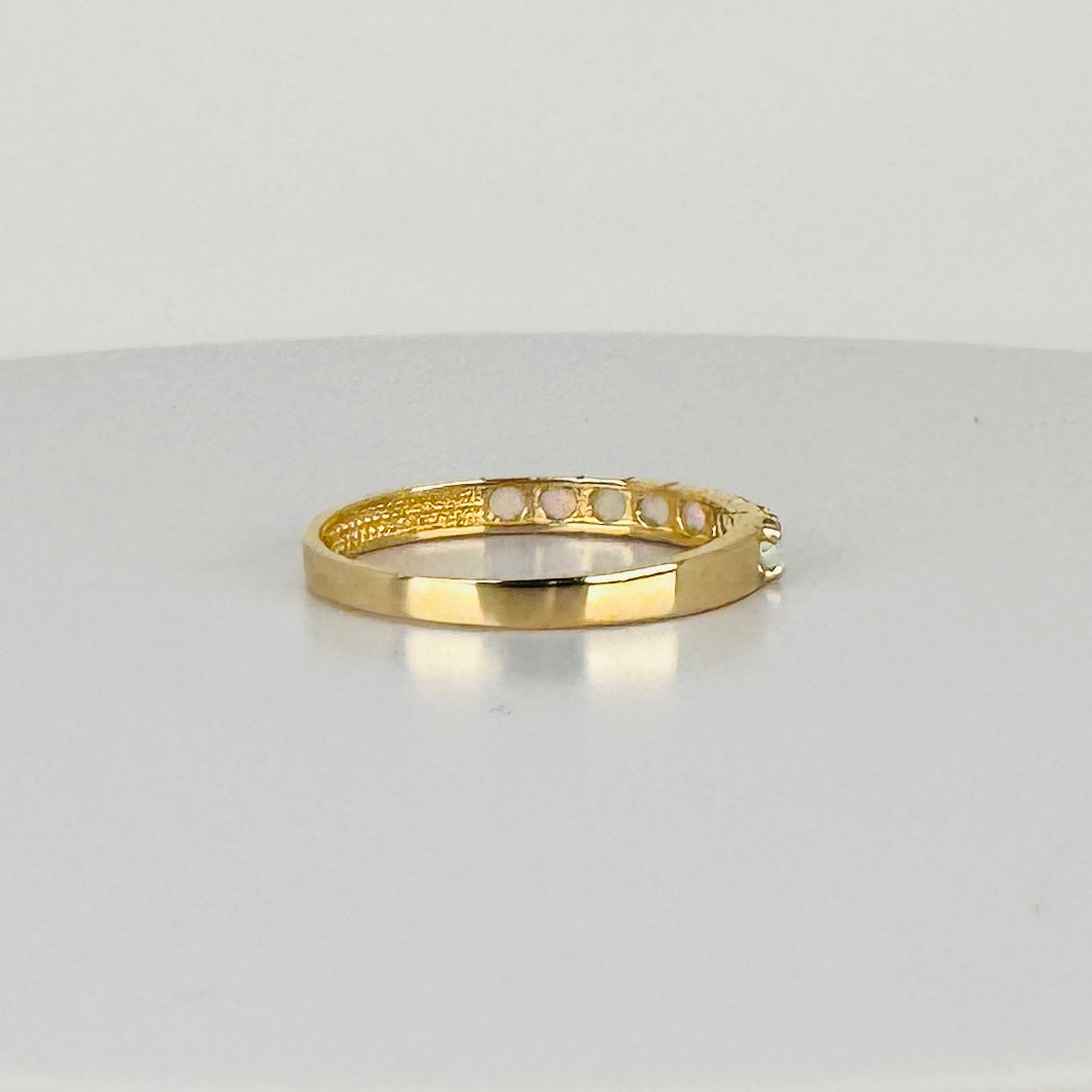 Ga voor de charme van deze 14-karaats gouden ring met prachtige opalen. Deze vintage ring is perfect voor dagelijks gebruik of speciale gelegenheden en voegt een vleugje elegantie toe aan elke outfit. Draag dit sieraad solo voor een klassieke look, of combineer het met andere ringen voor je persoonlijke stijl.