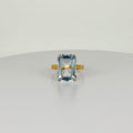 Kijk eens naar deze prachtige elegante ring eens. Deze ring heeft een schitterende smaragd facet geslepen blauwe topaas. Absoluut een blikvanger! Geef elke outfit een boost met dit tijdloze, unieke sieraad. Perfect om alleen te dragen of in combinatie met andere ringen.