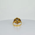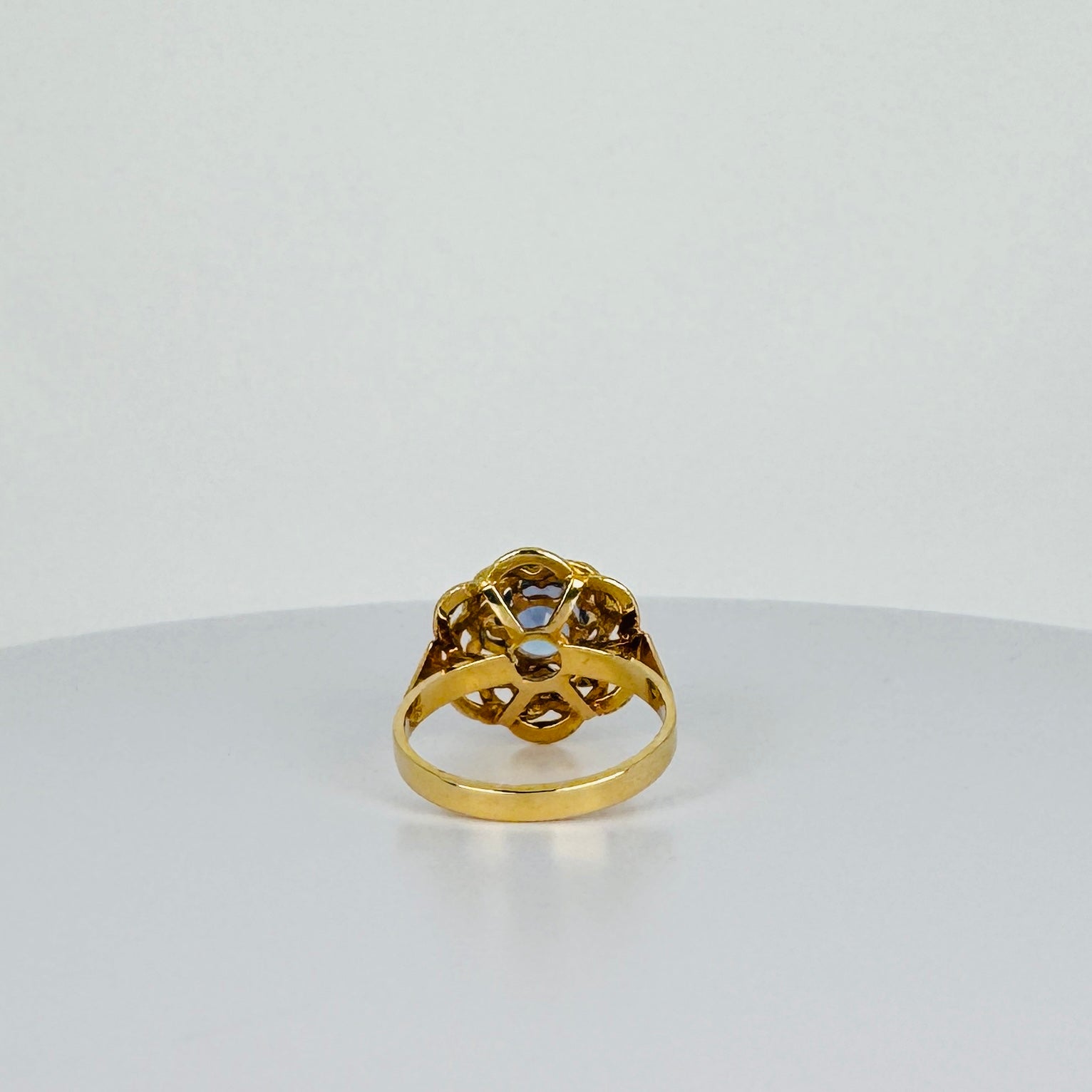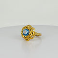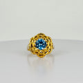 Absoluut schitterende vintage ring met blauwe topaas. Een echte blikvanger! Prachtige topaas edelstenen gezet in massief goud. Deze ring is niet subtiel en dat is precies de bedoeling.