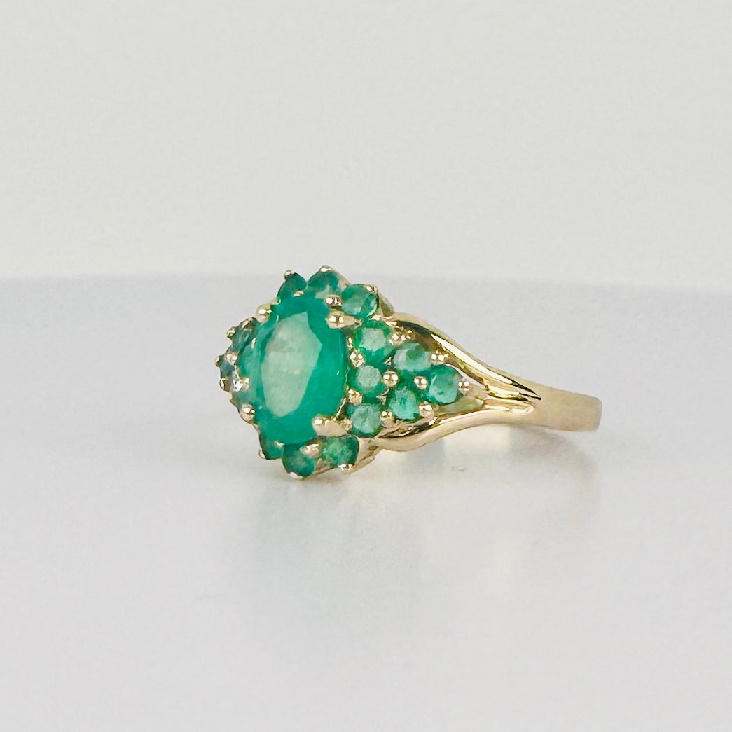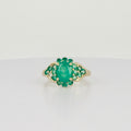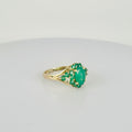 Maak je sieradencollectie compleet met deze prachtige 14-karaats gouden ring, elegant versierd met een natuurlijke diamant en schitterende groene smaragden. Het ontwerp en de sprankelende diamanten maken het een tijdloos sieraad dat bij elke stijl past.