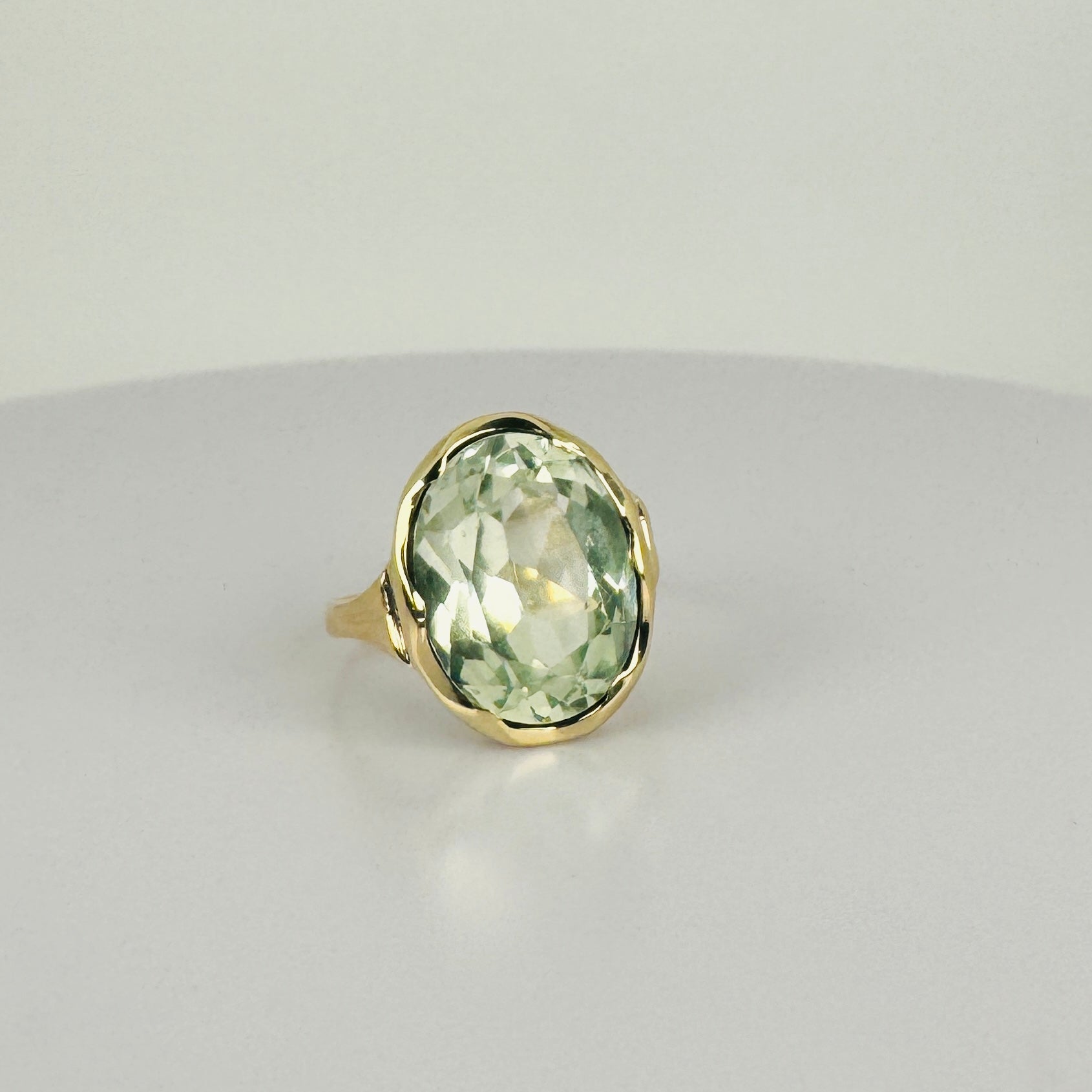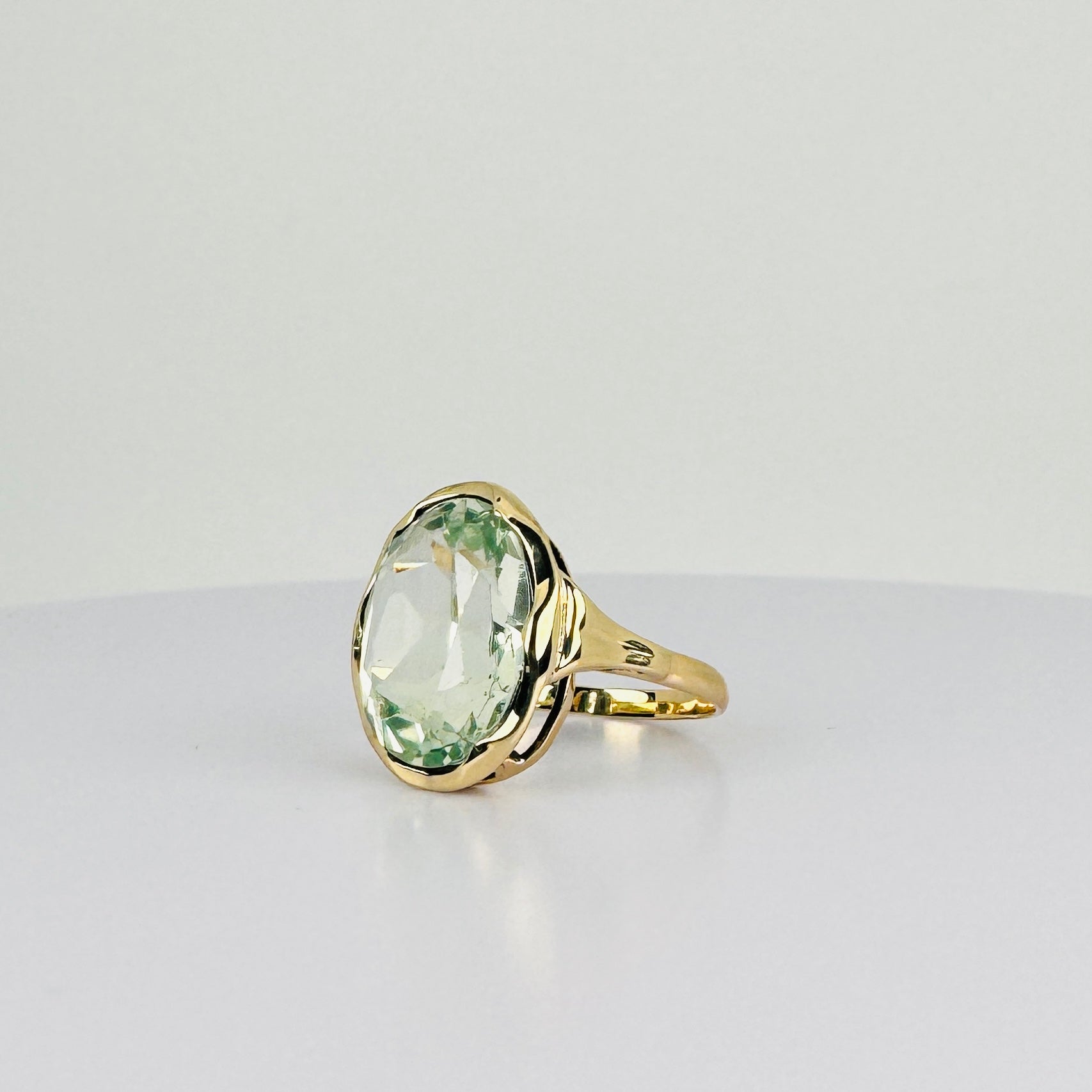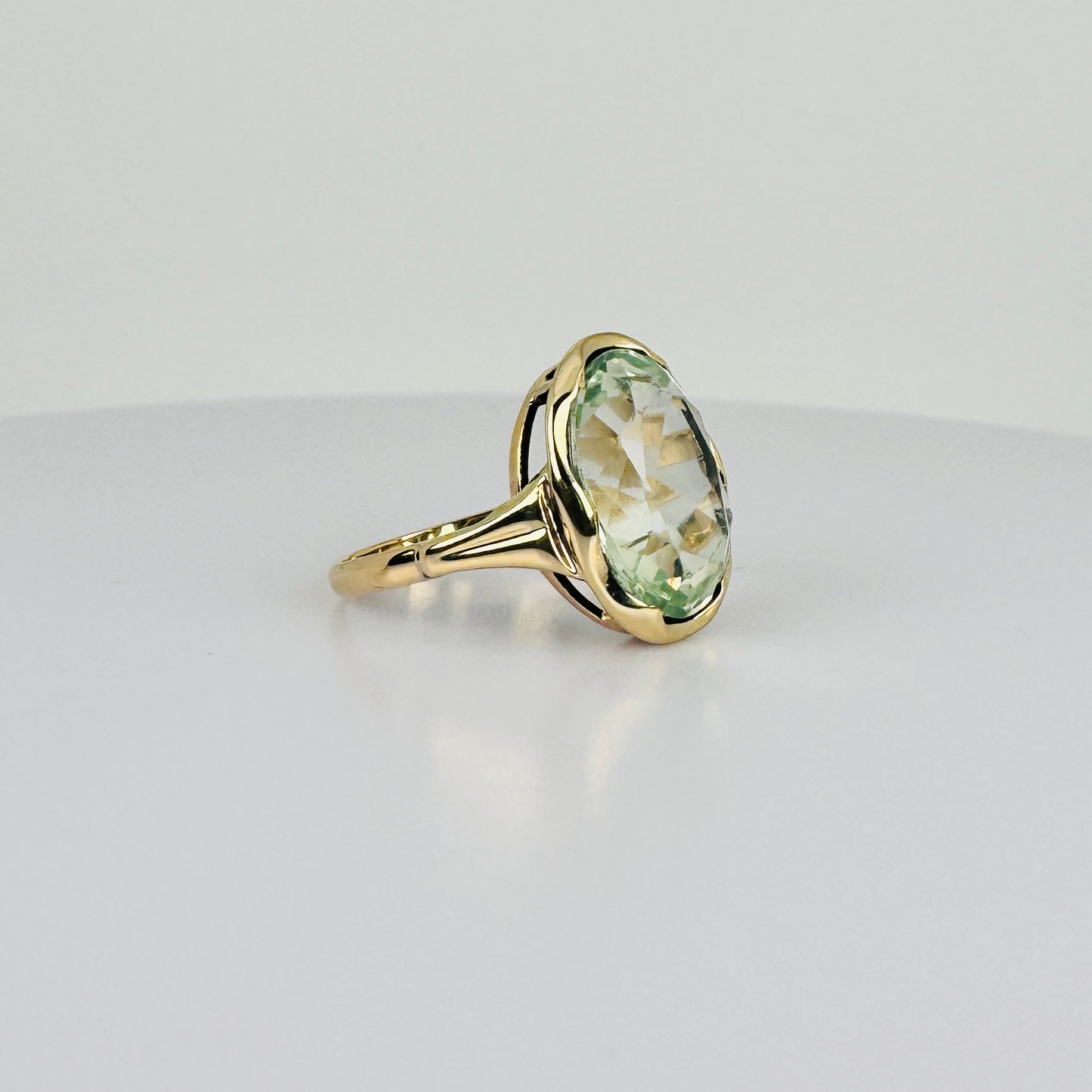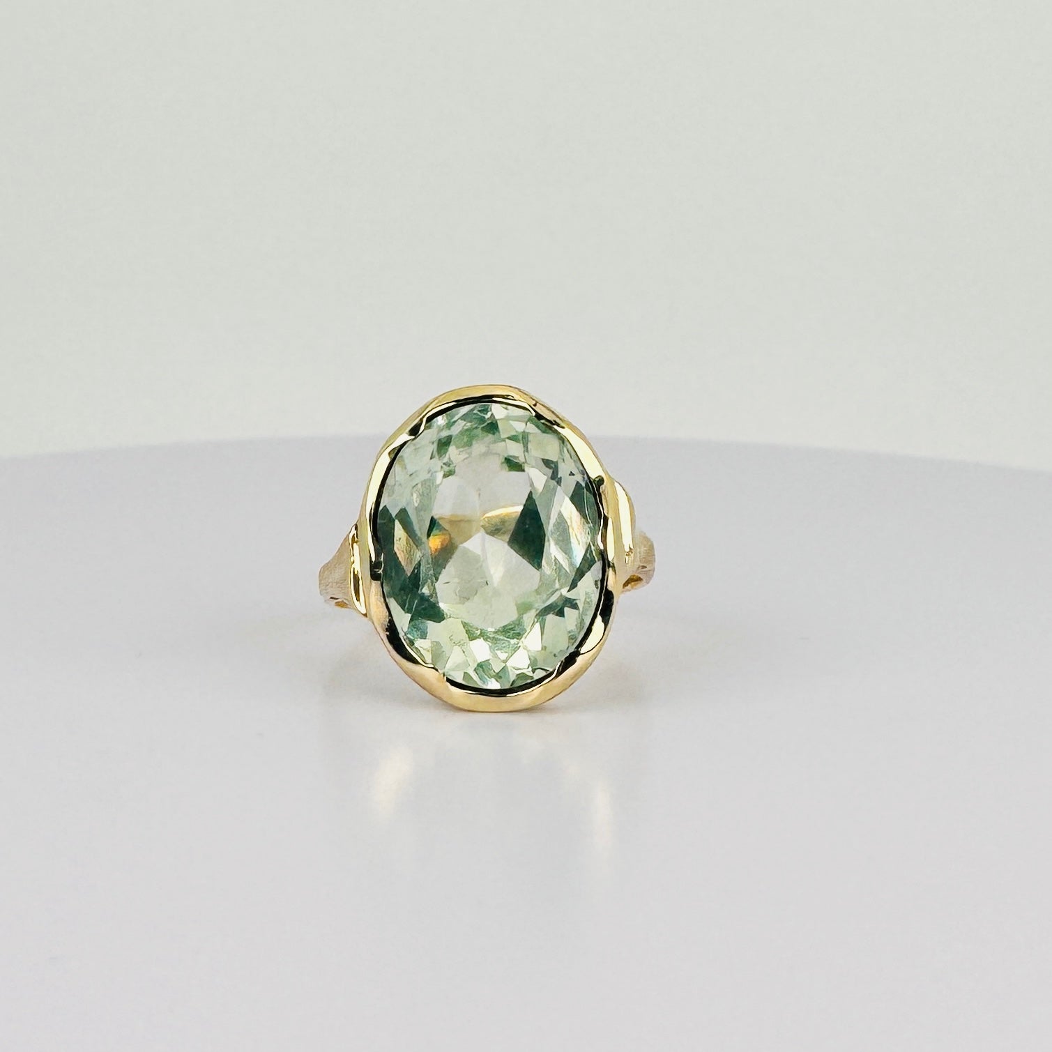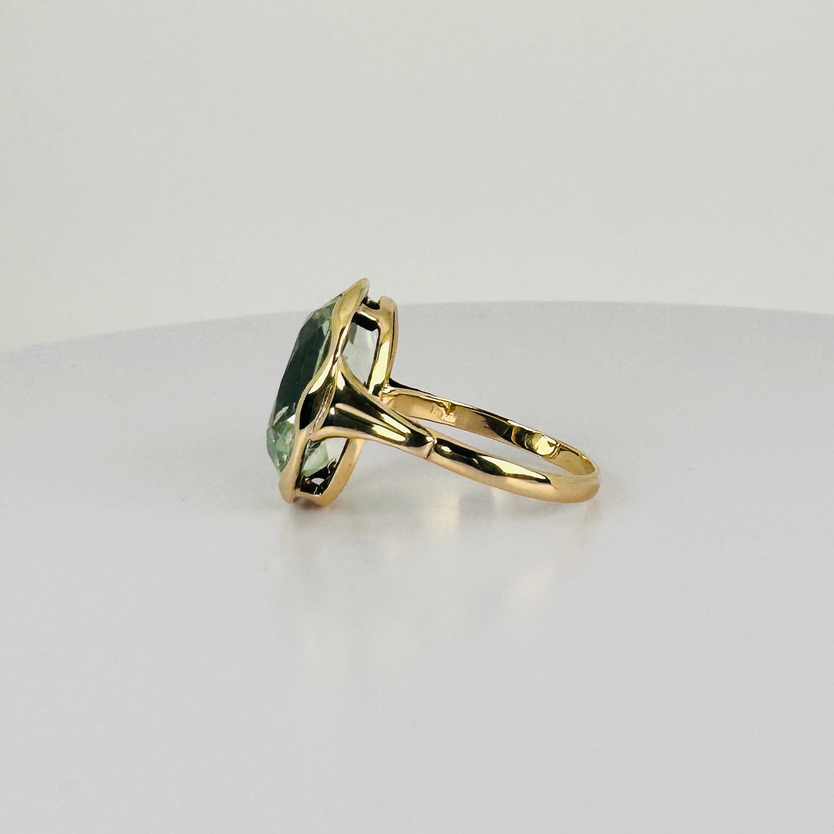 Wat een kleur! Prachtige, heldere en levendige groene spinel in een 14-karaats gouden ring. Deze ring is gemaakt om een statement te maken. Mis deze kans niet en voeg dit opvallende sieraad toe aan je collectie of geef he aan iemand speciaal!